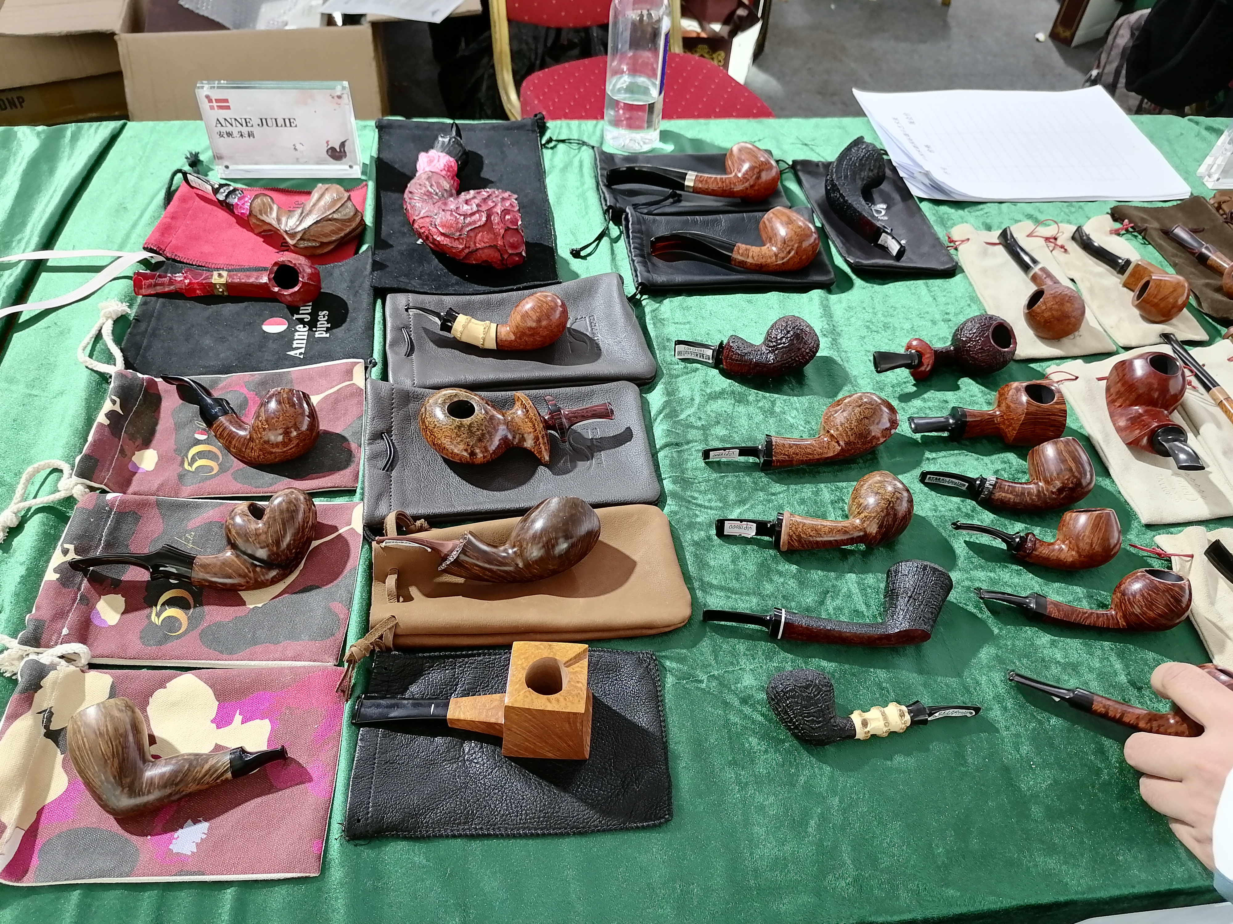 與參展人員聊天得知:煙斗,是抽煙用的重要而特別的工具,但煙斗卻屬于舶來品,最早來自美洲,隨著大航海時代的經(jīng)濟(jì)貿(mào)易往來,煙斗被推廣到世界各地,并逐漸形成了特有的煙斗文化。由于受到材料以及制作工藝的限制,中國的手工煙斗制作起步較晚,到現(xiàn)在只有約二三十年左右的時間,近十年間,煙斗制作成為中國工藝美術(shù)行業(yè)中的一股新銳力量,煙斗也因其精美的造型、優(yōu)良的材質(zhì)以及其蘊(yùn)含的審美屬性,逐漸從生活實(shí)用品,躍升成為備受關(guān)注的藝術(shù)品和收藏品,并且隨著斗師技藝的不斷進(jìn)步,煙斗工藝品的收藏也越來越被關(guān)注。