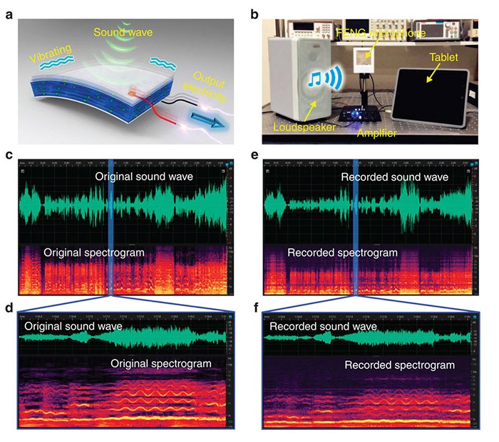 如今的最新突破,更進一步擴展了FENG的可用性。研究人員發現,這種高科技材料可以作為麥克風(從聲音或機械能中擷取振動,并將其轉換為電能)以及揚聲器(反向操作:將電能轉換為機械能)。