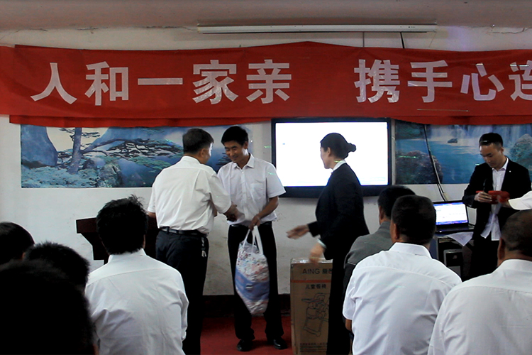“園區開工以來,礦部員工起早貪黑、加班加點踏實工作,表現出了難能可貴的主人翁意識和默默的奉獻精神,更好地展現了企業文化理念。正是由于你們的努力,才使得公司在發展的道路上越走越好。你們是公司的脊梁,是大家的表率。在郎寶龍董事長講話的引導下,活動正式開始。總部的同事們帶來了歌曲、快板、三句半等節目,臺上的同事們表演的興高采烈,臺下的的同事們看的津津有味。在節目的最后,楊青山經理,鄧偉部長為每一位礦部的員工送上了“愛心六件套”和“暖心棉被”,礦部的同事們樂在臉上暖在心里,此時此刻的感言:簡單、純樸、有力量。主持人宣布晚宴正式開始的時候,活動進入了另一種氛圍,大家開心地品嘗著家人自已烹飪的美食,用美酒交流著感情,一片祥和、一團和氣。