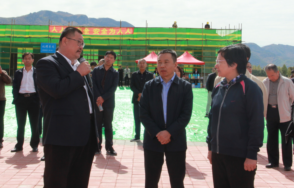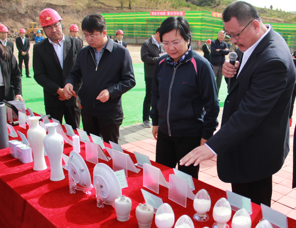 9月28日,承德市市長常麗虹帶隊7縣4區1市的市委書記、市長、縣委書記、縣長,及各局主要領導150余人赴圍場縣承德人和礦業有限責任公司觀摩“年產20萬噸伊利石深加工項目產業園區”。觀摩了產業園建設及產品展,常麗虹市長聽取了池縣長對圍場縣及人和礦業的整體介紹,又詢問了人和董事長企業產品的前景、優勢,未來的發展規劃,及企業是否有困難,同時對企業產品和未來發展給予肯定。