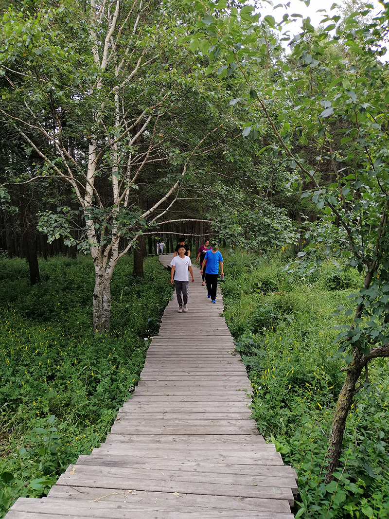 15:30 “承德人和礦業(yè)”總部的18位同仁乘坐3輛車來(lái)到黑熊谷”山門外,大家短暫休息之后,開始徒步登山……道路兩側(cè)的樹林郁郁蔥蔥,讓大家感受到一種神秘感,這里的香楊樹、水杉樹和松樹比較多,而且特別挺拔,太陽(yáng)透過(guò)樹枝灑進(jìn)來(lái),深深吸一口氣,空氣中散發(fā)著奇特的幽香,有時(shí)還夾雜著一些花草的清香;不知名的鳥雀“唧唧喳喳”說(shuō)著情話唱著歌;身邊泉水潺潺,演奏著自然和諧而動(dòng)聽的樂曲……美哉!
