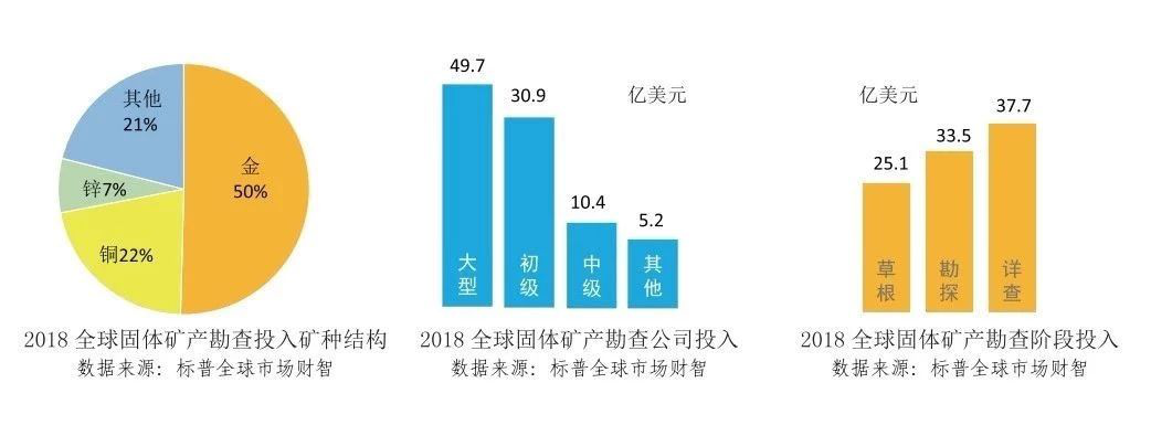 從勘查主體看,大型礦業(yè)公司投入占比增加,中小型勘查公司占比下降;從勘查階段看,草根勘查投入持續(xù)下降,詳查和勘探投入持續(xù)增長;從勘查礦種看,金、銅、鋅占比持續(xù)增加,鈾、鎳、金剛石占比持續(xù)下降;從勘查區(qū)域看,大型礦業(yè)公司逐步聚焦南北美、澳大利亞等地區(qū),大幅降低非洲、東南亞等地區(qū)勘查投入。